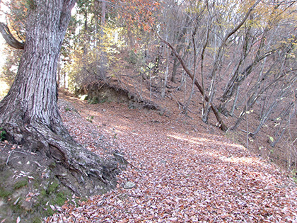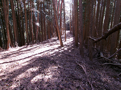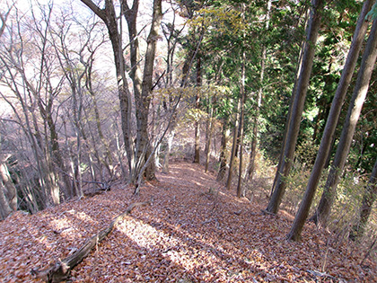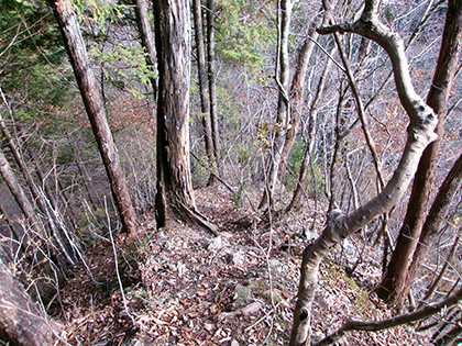 湯場ノ尾根の序盤は地形図にない林道がまとわりつきます。下るにつれ尾根は痩せ、冒険チックな様相が強まっていきました。
