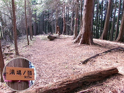 湯場ノ頭に到着。927mの標高点が設定されています。