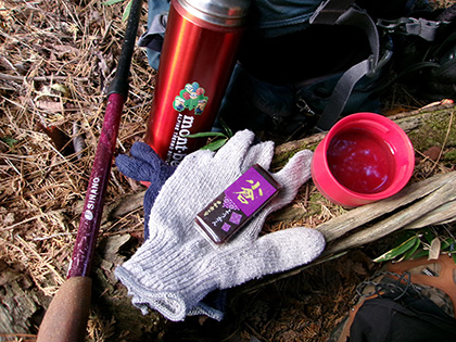 丸太に座り、羊羹とほうじ茶を喫食します。静かです。ぶらぶらします。意味なく両手を突き上げたり振り回したりします。
