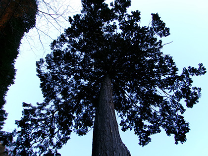 「檜原村天然記念物 名木第四号 檜」を見上げたり