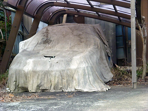 【永久駐車観察記】駐車場内バック・トゥ・ザ・フューチャー型スポンサーリンク 永久駐車観察記 X Facebook はてブ LINE コピー 2020.05.17御嶽神社ふもとの大鳥居近くで採取。バッとカバーを取り払うとデロリアンが現れそうな物件。誤写だったらどうしょう。謝るしかないけど。採取地:東京都奥多摩町でロリアンはドクがDMC-12を改造して開発したタイムマシン。炎の轍がゴーーーッと、できないか。