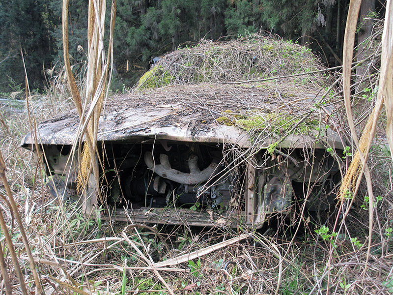 林道単純放置型スポンサーリンク 永久駐車観察記 X Facebook はてブ LINE コピー 2023.09.10林道脇の草地に突っ込まれている物件。アメ車のトランザムに似ていると思うけれどわからない。左ハンドルの物件は極めて稀。異国の地で静かに朽ちているのでした。 採取地:東京都青梅市