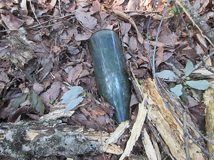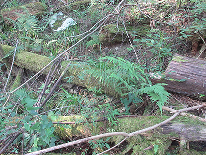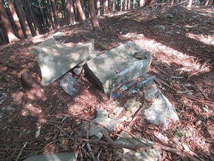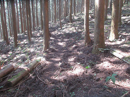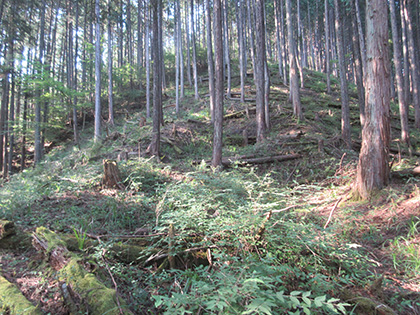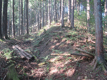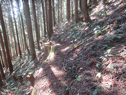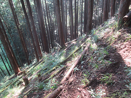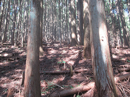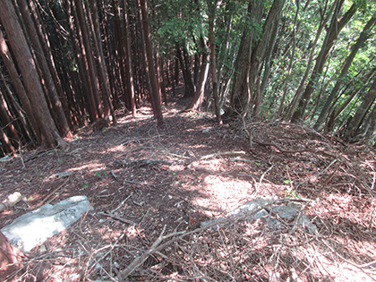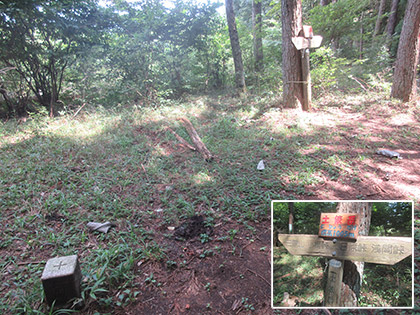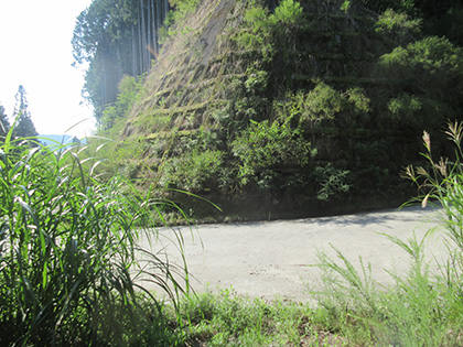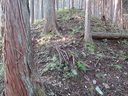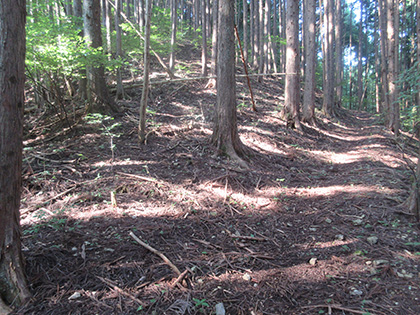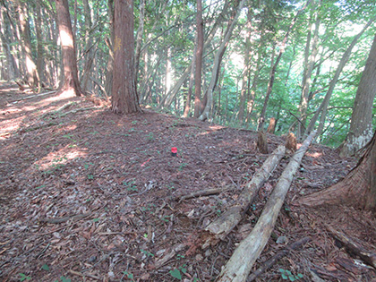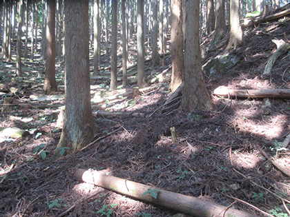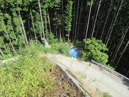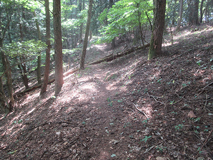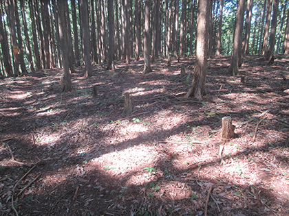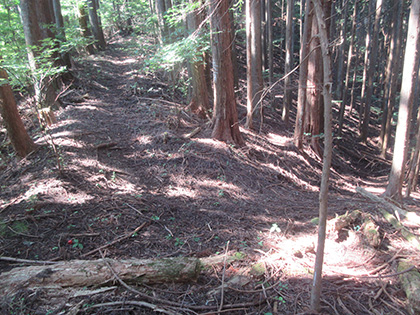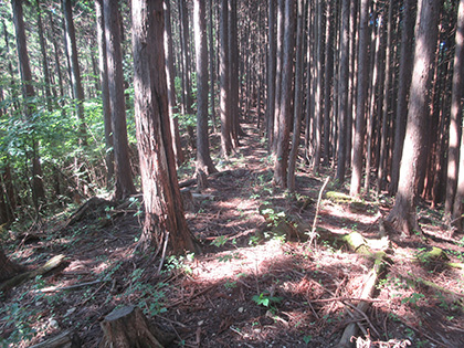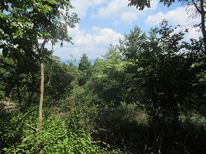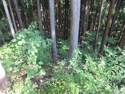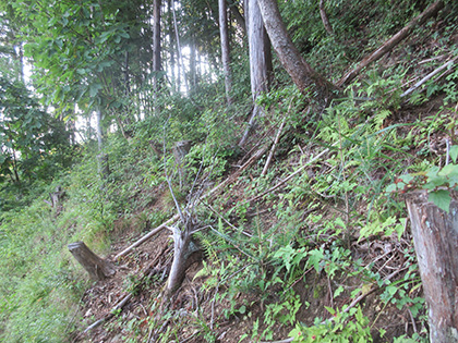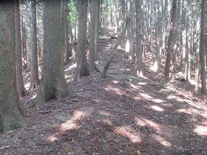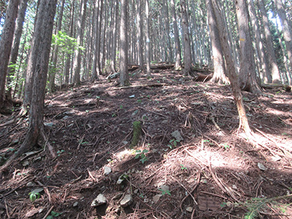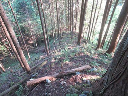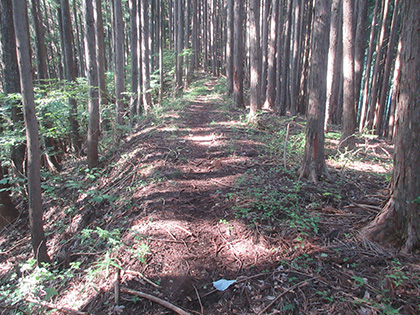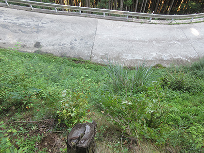 稜線上をたどっているといきなり地形図に掲載のない立派な林道にぶつかったのには驚きました。尾根のつづきに復帰するために草ボーボーの法面を這い上がったのが今回のルートでいちばんキツかったです。