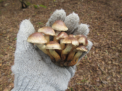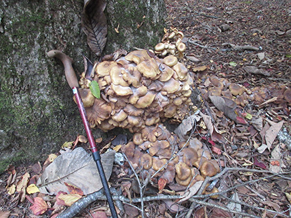 でも花より団子。ナラタケ(多分)の群生です。食べるには育ちすぎですが、