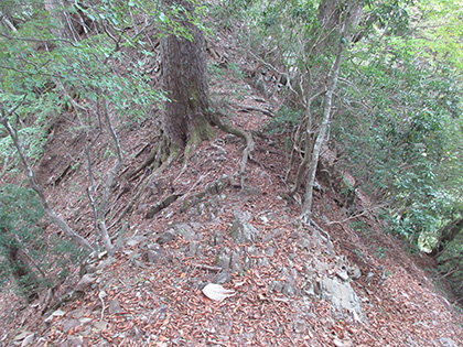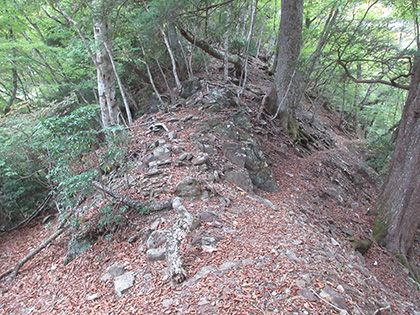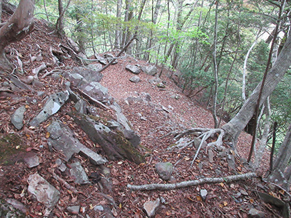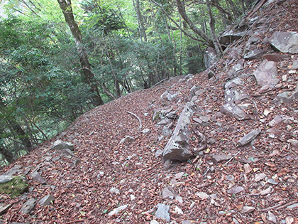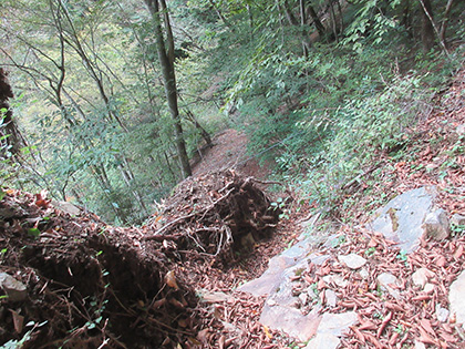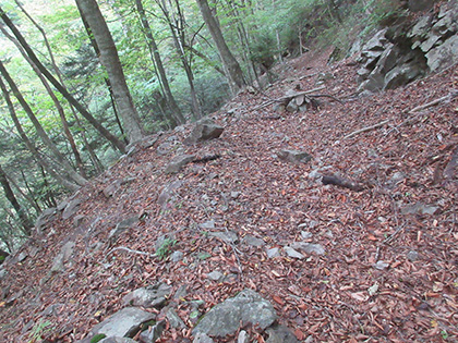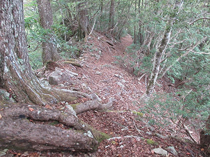 振り返って。上段歩道は人形山東尾根の山腹をトラバースしていきます。