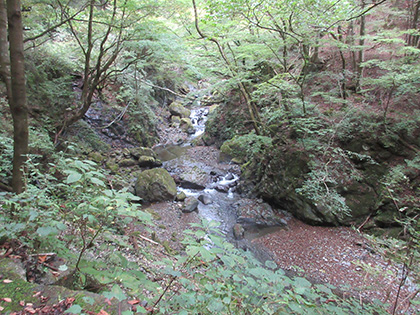 尾根はミズナラの大木が目立つ雑木に覆われ、無茶な急降下はなく、小川谷の音が聞こえてくると尾根はいきなりぎゅっと絞られ、小川谷上段歩道を横切ると小川谷林道はもうすぐ、でもないけれど遠くはありません。