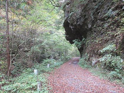 ゲートを抜け、頭上に被さる岩壁をちょっとビビりながら過ぎ、