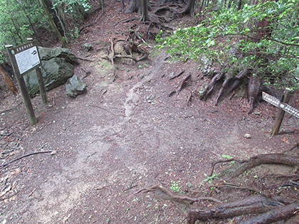 石祠から2分ほどでいかにも峠、みたいな場所に出ました。ここがどうやら本物の天目指峠みたい。