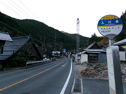 おはようございます。武蔵五日市駅前から数馬行きのバスに乗りました。上川乗(かみかわのり)バス停に着くとドドドドドーッと一気にわたくしを含め3人が降車。ほぼ空になったバスは走り去っていきました。2人はそれぞれ反対車線の待合所で身支度をしてバスを追うように出発しました。
