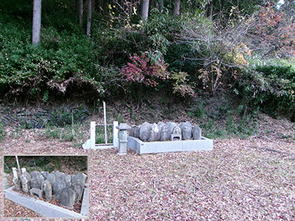 階段を上がるとかなり広い広場でした。20尊ほどの石仏が安置されています。近在の石仏が集められたのでしょう。石仏たちがマンナリ沢左岸尾根を背負っています。はて、どこから取付けばいいのでしょう。