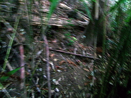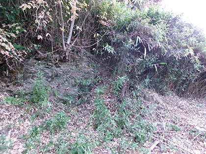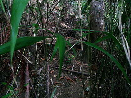 濃密な笹薮の壁にいくつか穴が空いています。いちばん大きい穴から取付くことにしました。
