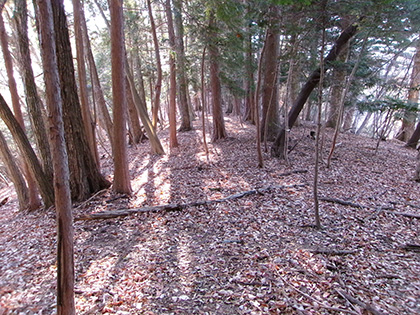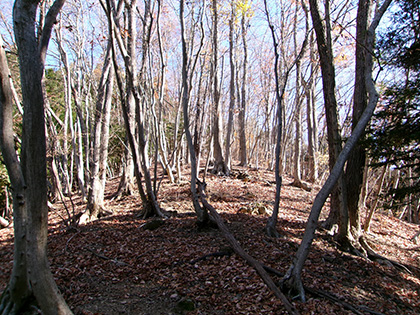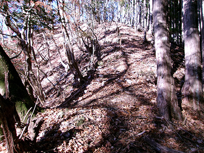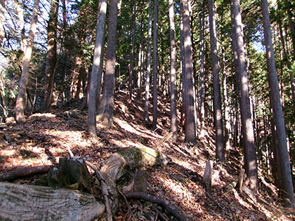 地形図を見てほぼ植林に覆われた尾根だと思っていたんですがまったくそんなことはなく、ほとんどの行程が葉を落とした雑木を背負った明るく美しい尾根でした。