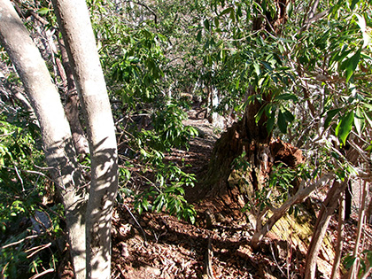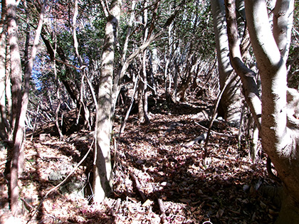 アセビにぶたれながらヤセ尾根を歩いています。