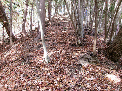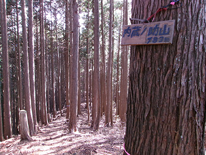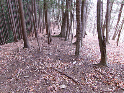 ダイコン沢左岸尾根の下降点です。ちなみに内蔵ノ助山の標高なんですが、地形図ではどう見ても770m圏です。けれどもどうやら一般に流布している標高は783m。なぜだろうと思って調べてみたら『奥多摩』(宮内敏雄 昭和刊行会 昭和19)の200ページに「独標七八三米の内蔵ノ助山」という記載がありました。これが出処でしょうか。