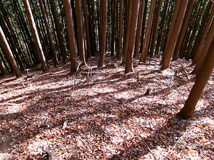 植林内を下っていきます。
