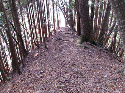 左植林、右雑木の尾根がつづきます。