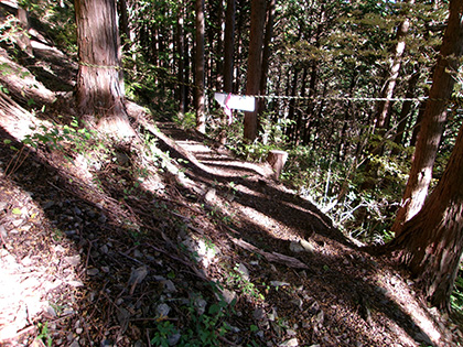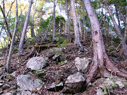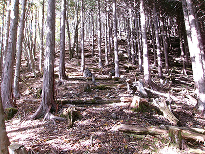 下ります。切り株が並んでいますがこんな斜面で伐採作業なんて正気の沙汰ではありません。