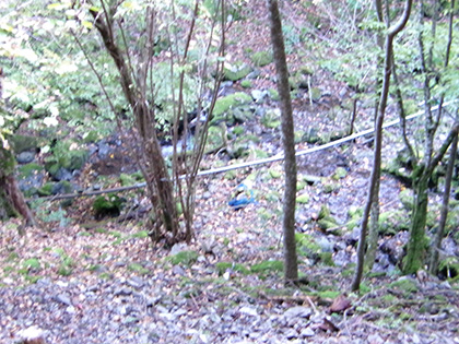 小中沢と長尾沢の出合を眺めながらちょっと休憩。息がはずんでブレています。巡視道を引き返します。