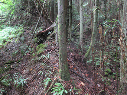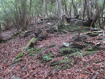 長野川上流二俣中間尾根は上野原市を流れる鶴川の支流、初戸(はど)川の支流、長野川が笹尾根の南面640m圏で二俣に分岐する地点から笹尾根の1060m標高点にせり上がっている尾根です。森沢右俣上流二俣中間尾根は笹尾根の1100m圏から森沢右俣の分岐点(860m圏)に向かって東に下っている尾根です。どちらもテキトーな名付けです。