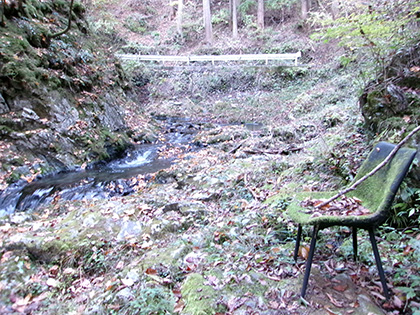どちらにしろ矢沢林道を歩いてすぐ、矢沢沿いに見える椅子に