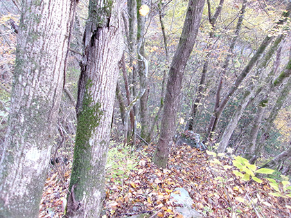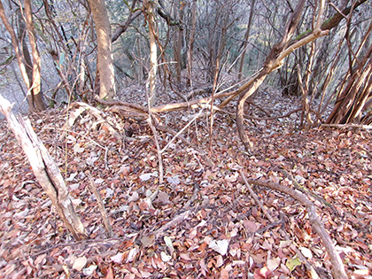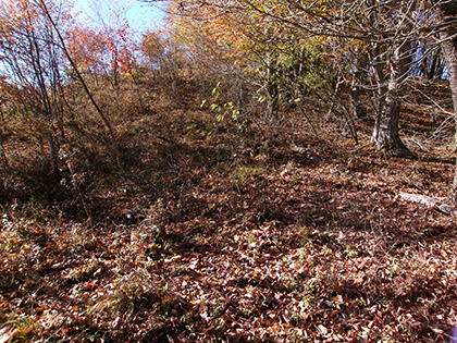 520m圏で傾斜はゆるみ、尾根は幅広になりました。不思議な平地です。