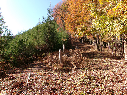 ではなく、まだ先があり、左手から植林が迫ってきました。