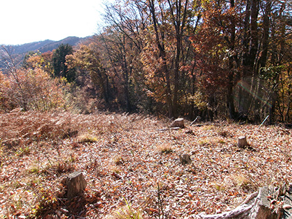 570m圏で伐採地跡に出ました。11月下旬の太陽ですが暑いぐらいです。