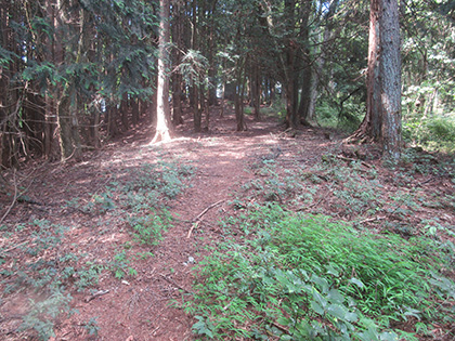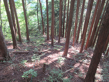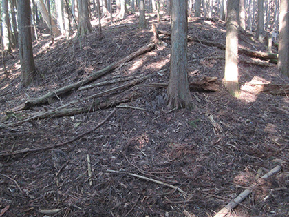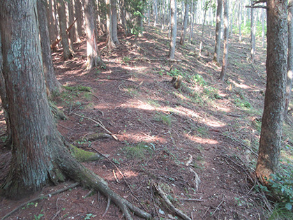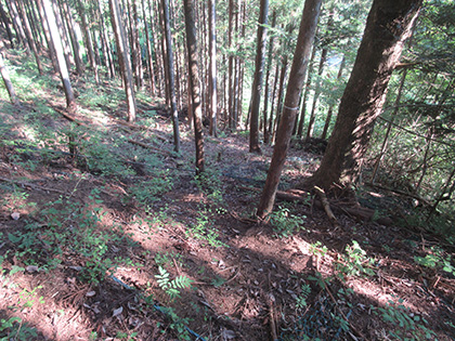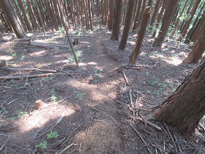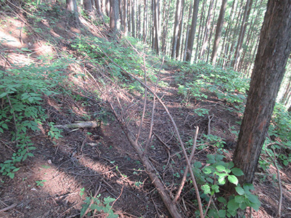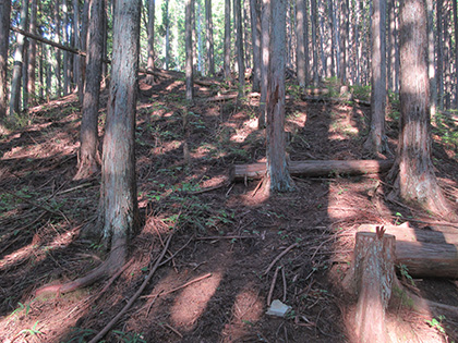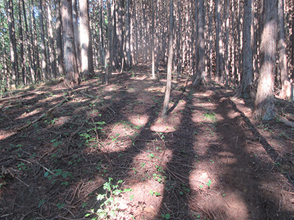 大羽根山東尾根の序盤は歩かれていなそうだけれど立派な作業道が尾根を分断しそうでしないまま尾根上そばを登っていました。