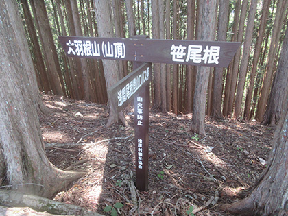 実は、というほどのことでもないんですが、山頂の写真を撮り忘れたので大羽根山尾根を笹尾根に向かって5分ほど歩いた地点から引き返してきました。女性ソロハイカーがザックを降ろし、ストレッチをしていました。