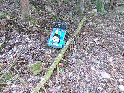 大きめの石が混じったコンクリート片が転がっていました。堰堤か橋台の残骸かもしれません。