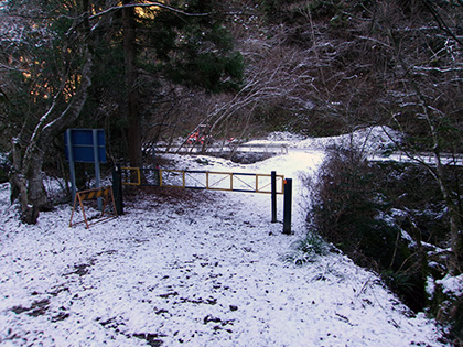 市道山から1時間15分でようやく千ヶ沢林道の終端が見えてきました。地形図の記載と合致しています。