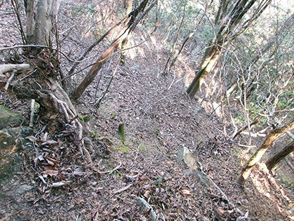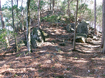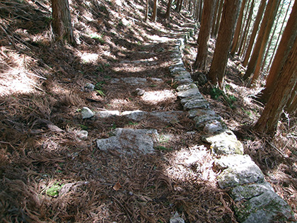 中ノ沢ノ頭や春岩山のピークは巻きます。巻き道にも石段がつくられていました。