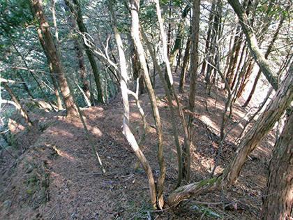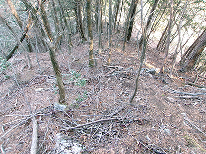 しっかりした登山道はほんの20mほど歩いただけではなれ、右の尾根を下っていきます。