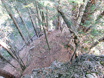 いよいよ上高岩山北東尾根を下ります。いきなり危なっかしい急降下です。