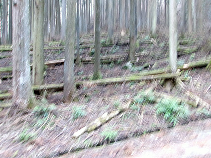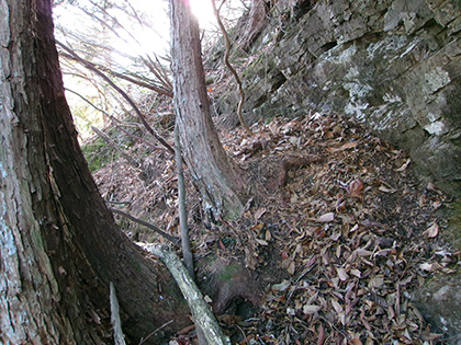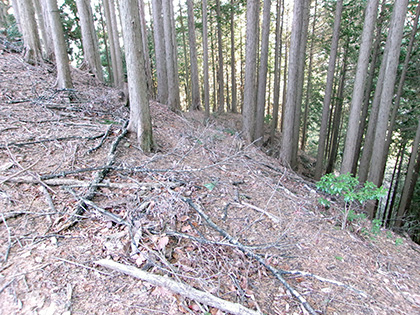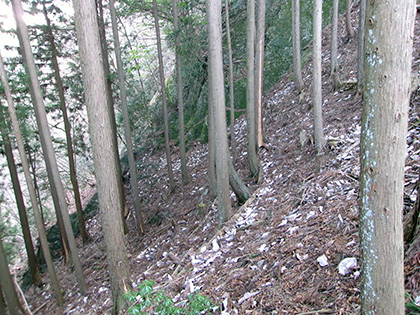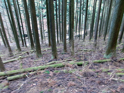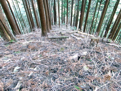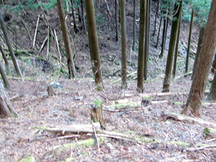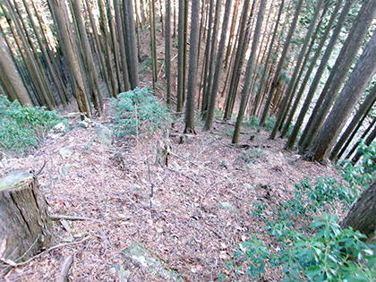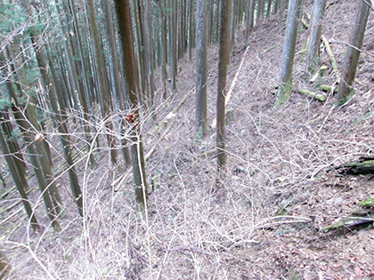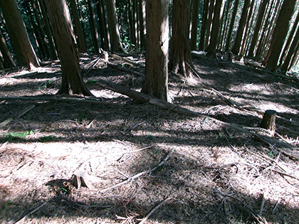 枝打ちされた枝葉が積もっているんですが薄いのでそれほど歩きづらくはありません。