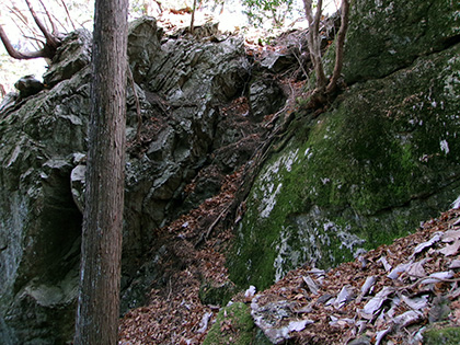 岩に溝がありました。登れそうな気がしたんですが、登った後に岩稜を安全に下れるのか大いに疑問です。通過します。