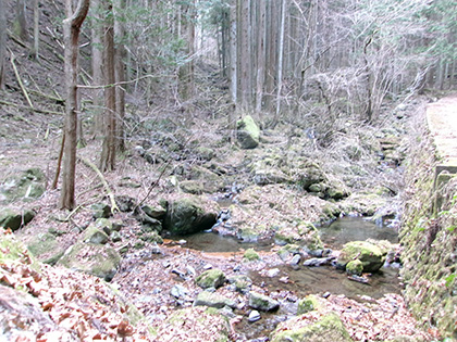 歩き始めてすぐ、大グラミ沢が写真左奥から養沢川右岸に流れ込んでいます。養沢川の上流域は御岳沢という名前らしいけれどどこから養沢川になるのかよくわかりません。