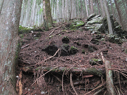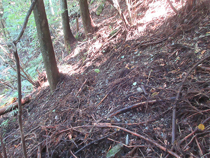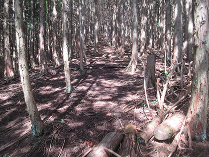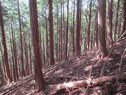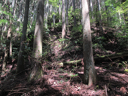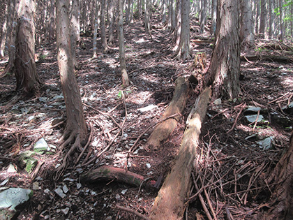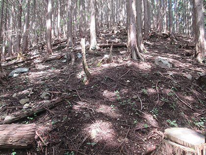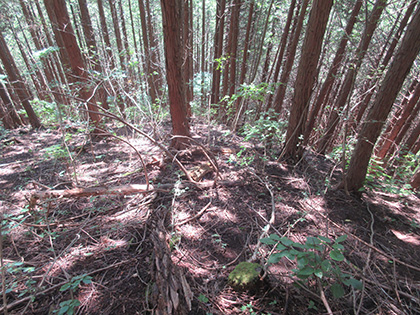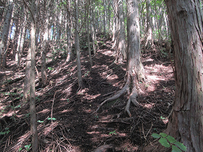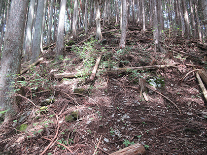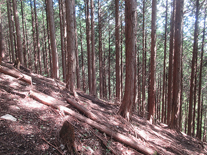 尾根はマツとヒノキの植林に囲まれた急登が基調のガマンガマンの一途といえば一途、淡白といえば淡白、単調といえば単調な素直で実直な尾根でした。