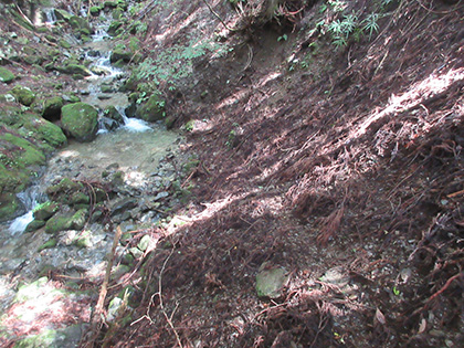 上流に向かう道はあるのかたずねると、道はなく、小尾根を登っていけば険しいけれども道があることはある、とのこと。礼をいって別れました。別れぎわに、一人は危ないよ、イノシシが出るよ、と心配してくれました。ありがとうございます。無事、帰宅しました。