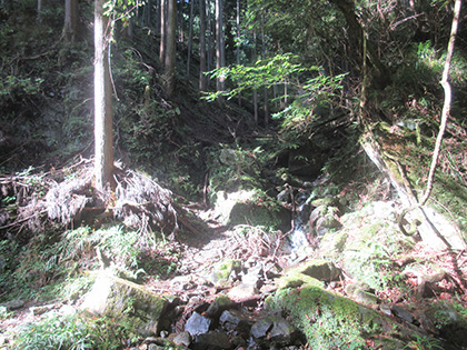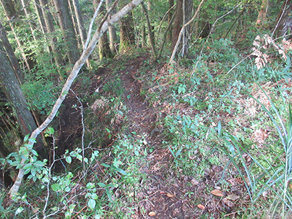 どこか南秋川を渡れる場所を探しながら下流に向かって歩きます。打ち捨てられた(多分)畑を回り込み、踏み跡はつづきます。
