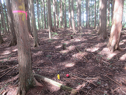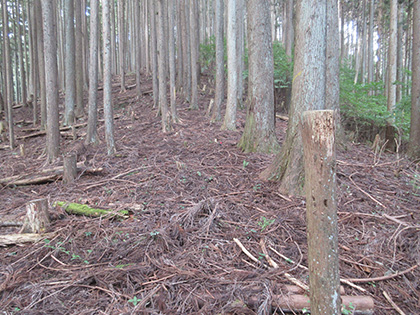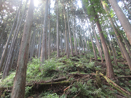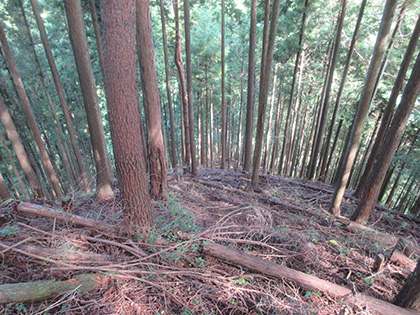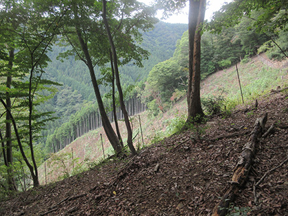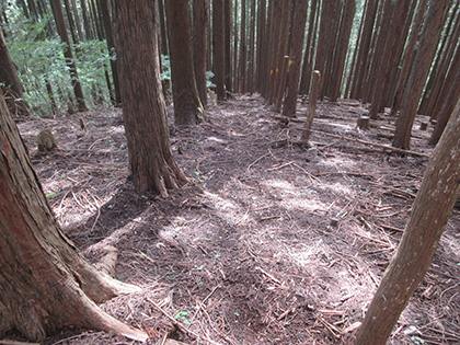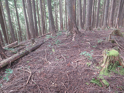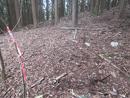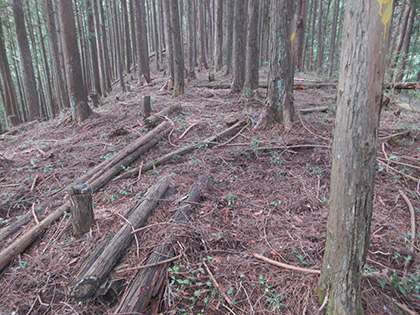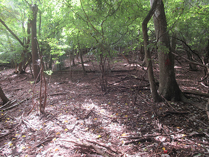登山道を横断してこの付近でいちばん高い820m圏に立ちました。これにてショウ沢右岸尾根はおしまいです。