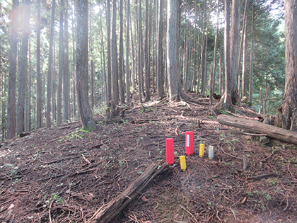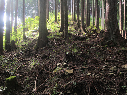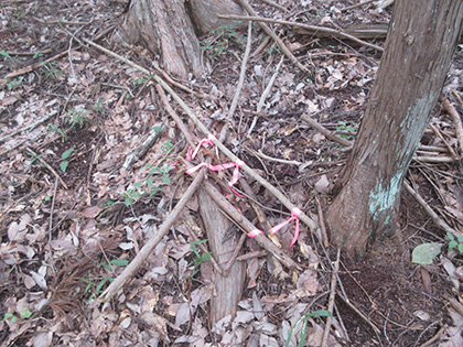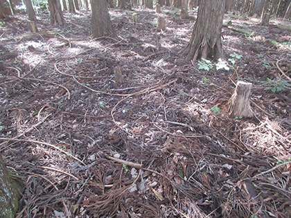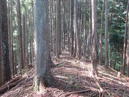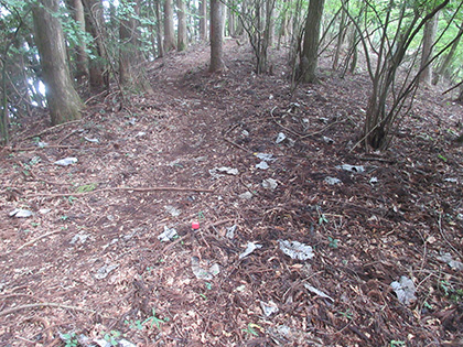 530mあたりで勾配はゆるみ、左から登ってきた尾根と合流。とても賑やかな場所です。