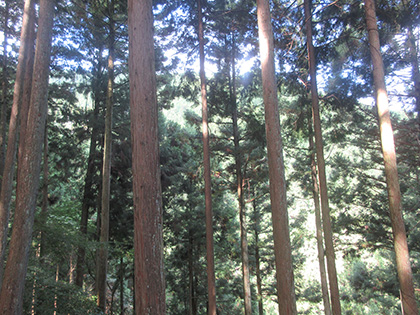 ザックを降ろし、杖と軍手、手ぬぐいを引っ張り出して正装に。ペットボトルに詰めてきたほうじ茶をグビリと飲みます。振り返ると檜原街道から下った坂道(写真中央やや上)が見えました。午前中に開催されていた「第13回東京ヒルクライムHINIHARAステージ大会」の名残りなのかたくさんの自転車乗りが左から右へ、檜原街道を走っていきます。かなりのスピードなんですが、仲間と会話しながら走っています。楽しそうです。