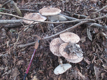 でっかいカラカサタケ(ニギリタケ)を通過します。食べた記録はこちら。