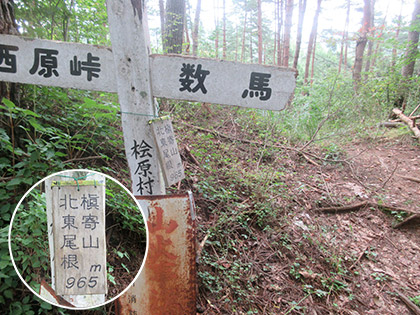 「国定忠治が遠見した所」を通過します。かつて下った曲り沢右岸尾根のてっぺんです。