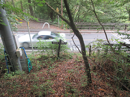 峠からすぐ右手に破線が出ているんですが、現場では見つかりません。初っ端から暗雲が立ち込めます。