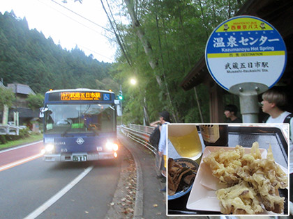 温泉センターバス停です。風呂上がりに瓶ビールと舞茸の天ぷらをいただきました。天ぷらがでっかくて驚きました。7週連続のわたくしへのサービスかと思ってニンマリしていたらみなさんでっかかったです。ははは。瓶ビールのお通しが舞茸と生姜の煮付けから舞茸とゴボウと昆布の煮付けになっていました。ささがきゴボウのシコッとした食感とやわらかい舞茸の食感がすこぶるマッチしておいしゅうございました。生乾きの右靴に足を突っ込みバスを待ちました。山の神様、地権者の皆様、きょうもありがとうございました。動画は撮れませんでしたが、南秋川への降下、渡渉、田和峠から槇寄山北東尾根につながる破線たどり、楽しかったです。ちょっぴりシンドかったけれど。また、よろしくお願いします。