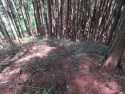 伐採地跡と雑木の境目を下っていきます。