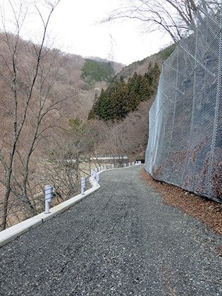 同じ場所から林道の先を撮影。こちらにも石垣が見える。