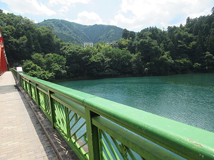 橋上のバス停でバスを待ちます。下ってきた赤指尾根の下端部、雨乞山南東尾根が目の前に見えます。麦山の浮橋からの帰りでしょうか、馬頭トンネルをくぐって外国人観光客がぞくぞくと橋を渡ってきました。
